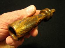 Offering a Modern Tube Pipe or Cloud Blower, quarried from the Sierra Hills of California. This multi-colored pipestone is a pleasant shade of brown in addition to black. The colors are very evenly distributed. This carved pipe was given a very smooth and nicely polished finish and waxed .