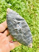 What a beautiful piece of hornstone with all the lightning streaks! Has a bit of translucency to it. It’s super thin but hinged up around the quartz crystals. Has a little cortex left on tip and base |