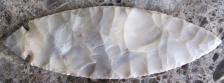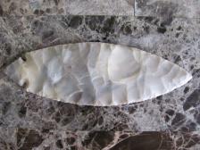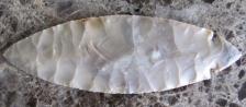 This is a very large turkeytail made of pedernales flint. This is not a point made of the correct material for the type, however it is a very large and well chipped point. The scar pattern is very clearly from a billet which is correct for a turkeytail. This point really looks good in a case as a center piece.