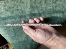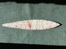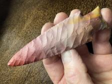Danish Dagger made of Keokuk with rust colored veins throughout. Percussion and pressure flaked. Use promo code merry15 for 15% off from December 11- December 18, 2022. |