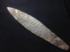 Danish dagger made from a long round pedernales amoeba using antler direct percusion and copper pressure just like the old boys did it. |
