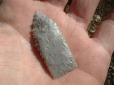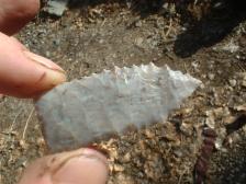 Hi,this one is an interesting serrated pt. from local agate,decent quality,very sharp..much like one part of one I found here.. thank you ! |