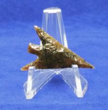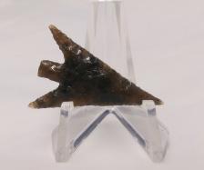 Sharp little point made from a translucent brown obsidian with black specs throughout. |