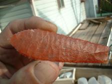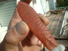 Hi ! I have a few to show ya'll,this one is henry mtn agate,nice heavy red mossy agate,pretty good pt,hell gap style,3 9/16 x 1 in wide,small pressure flute flake's ,and ground base..nice pt. ! thanx ! |