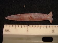I Knapped this out of some Pigeon Blood variety of agate from East Utah area.Nice little adition to any collection. Thanks for looking and have a good day. |