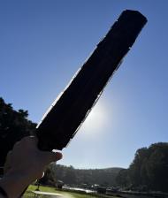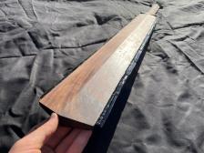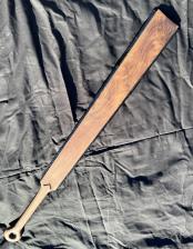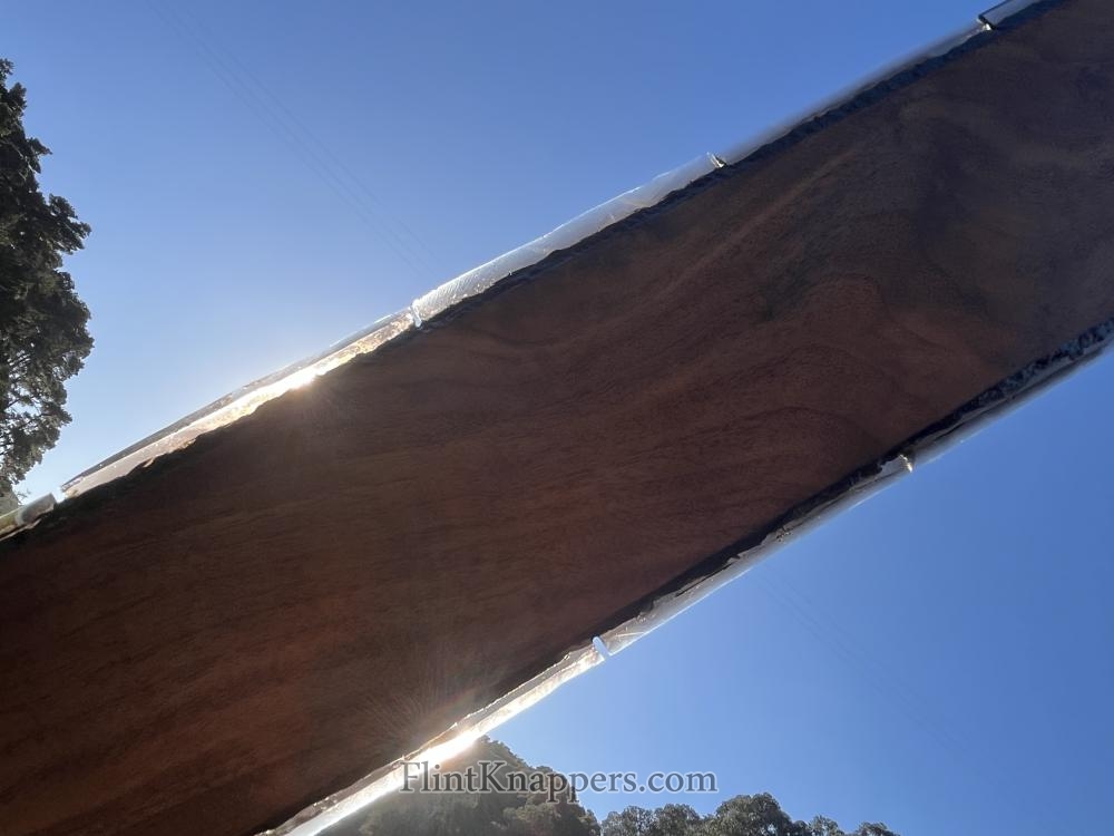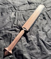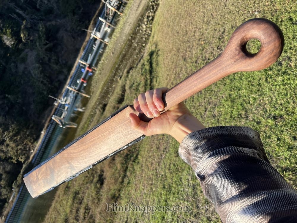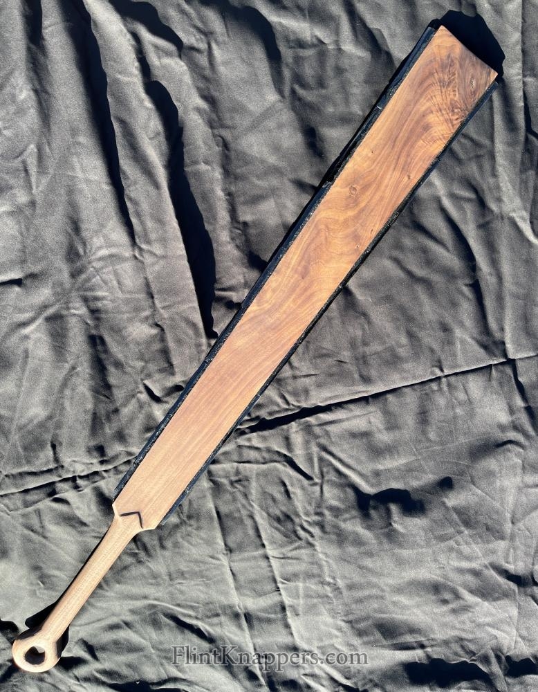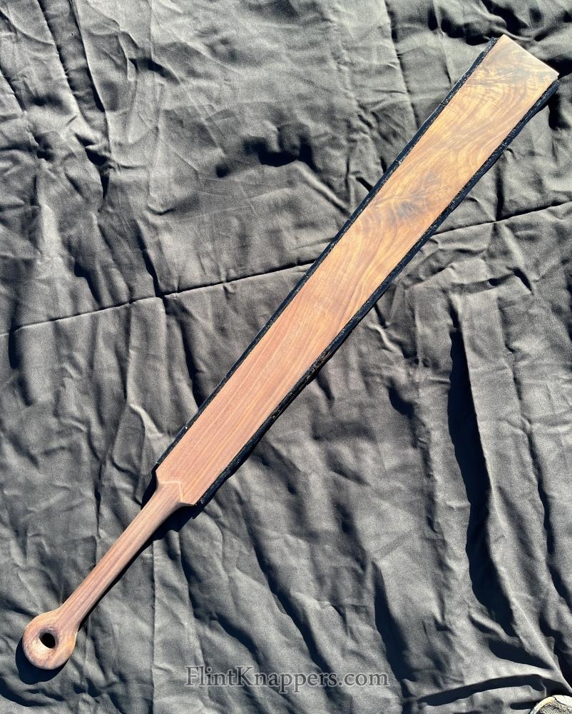 Macauhuitl I made from walnut, glass buttes obsidian, and pine tar. The wood work was finished with obsidian scrapers. I went with an angular theme with this one. The sharp angles were a trick to finish out with stone tools, but I like how it came out. |