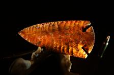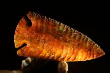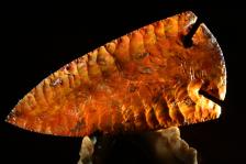 What a stunning piece of Jasper. This is a really massive spear point. This stone is an absolutely incredible piece of God’s art. I was graced to have had the opportunity to knap it. The flake patterns and edging really set this one apart. There is not much that needs said about this one, the photos say it all. |