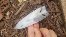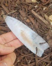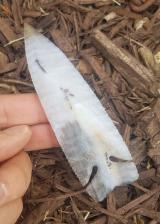 Here is a beautiful wintu style point made from alligator agate..deep narrow entry on the notches. A nice large point!                       |