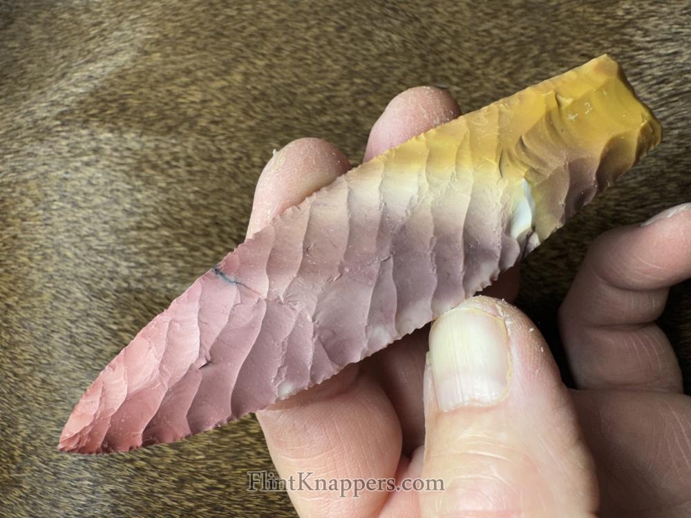 Made from beautiful Polkadot agate from Oregon! Finely flaked in a parallel oblique pattern, thanks for looking! |