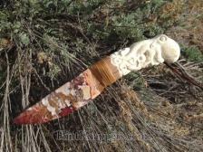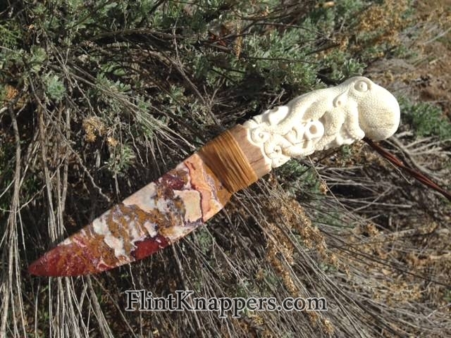 Carved Antler-Handled Indian Blanket Jasper Knife — Octopus & Skull Motif By Don Sutton |