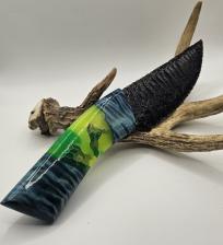 Silversheen Obsidian blade with Fordite cast in resin handle |