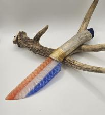 Keokuk blade. Handle is antler with Fordite end cap. |