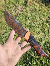 Black obsidian blade with 3d printed honeycomb cast in resin handle |