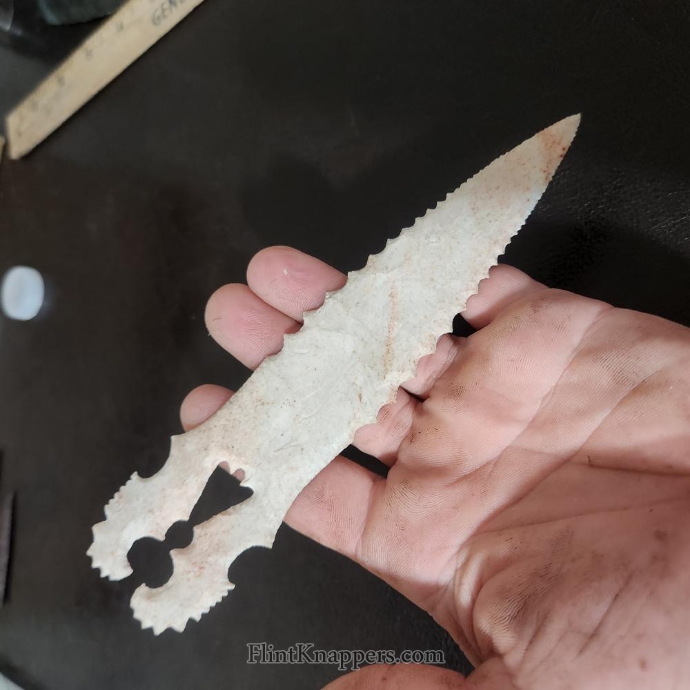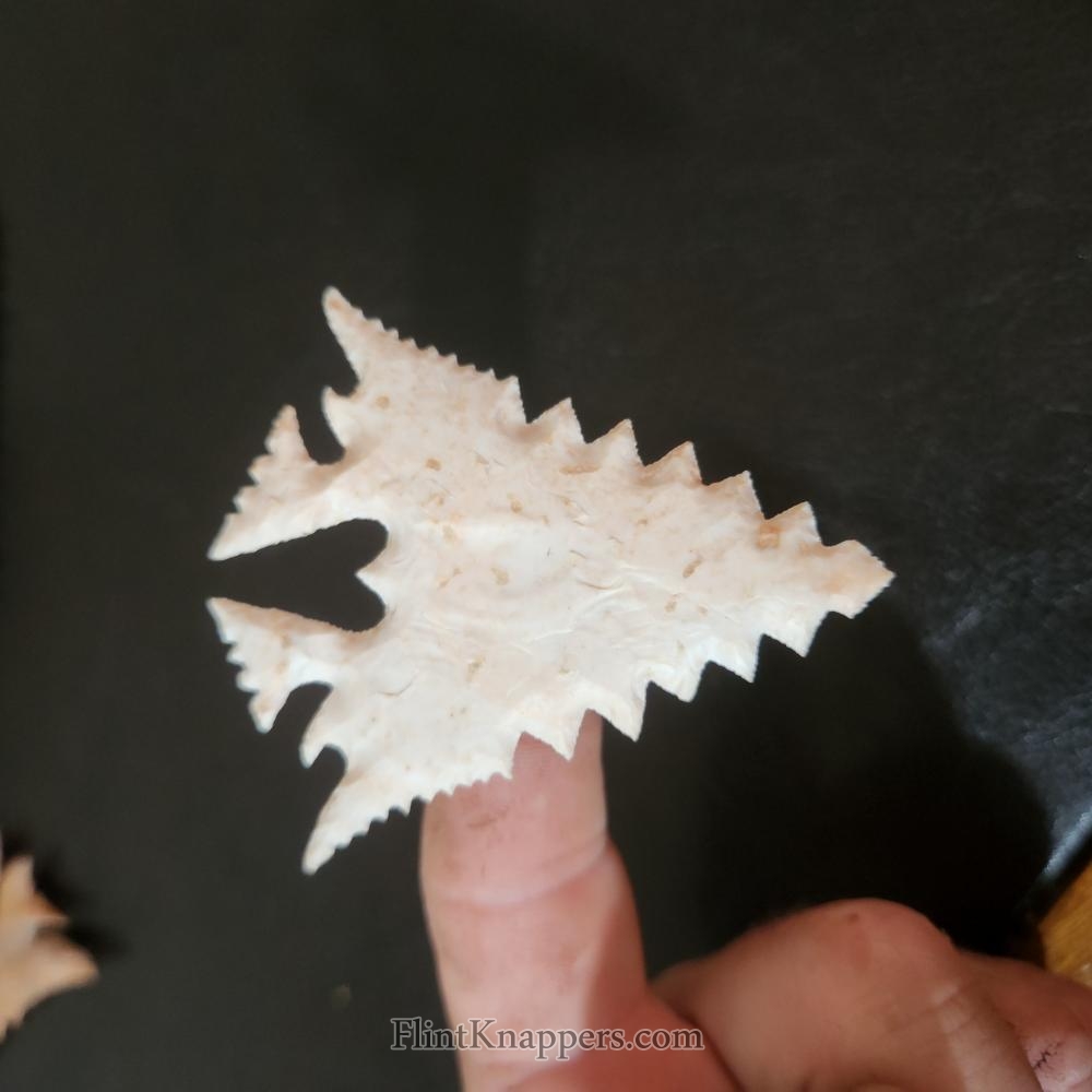 All of my eccentric pieces are made from thin, direct percussion bifaces, using spalls or raw stone, worked primarily with copper tools.