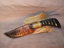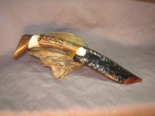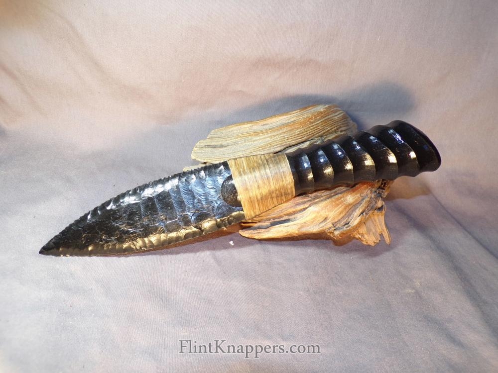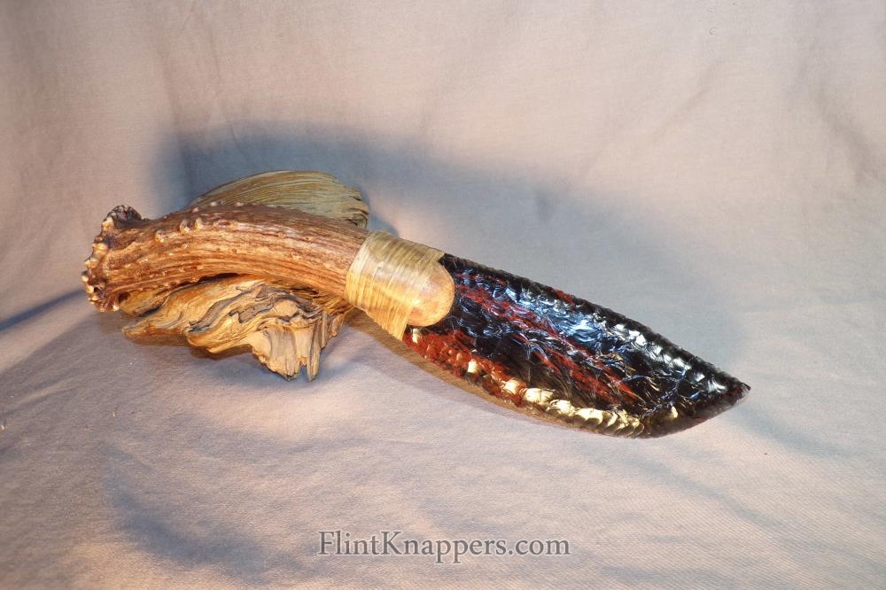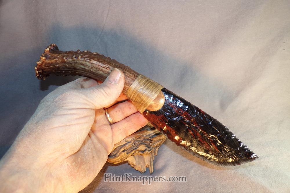 Knapped Dacite Paleo Knife Elk Antler with Walnut End Cap Handle |