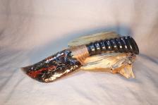 Lace and Red Obsidian Paleo Knife w Elk Antler & Walnut End Cap |