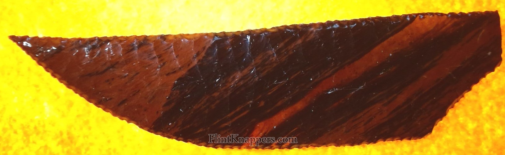 Hi, I am from Yuma AZ and I've been knapping for a number of years now. I also carve antler handles for sale and for my knives. How I started knapping was because of a native American I got my blades from passed away from cancer. His name was Ron Saunders. He was a great knapper and his passing forced me to take up knapping. Over the years I've had help from a couple knappers, namely Dale Cannon made a video which influenced me to make stone handled knives, another great knapper friend of mine helped me get started in FOG knapping style. Michael Brown encouraged and guided me on this technique. I've gotten to the point I'm proud to offer my blades and knives for sale.