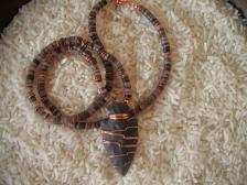 My necklaces are created from semi precious stone beads, sterling silver wire, lobster claw clasps, and sterling spacer beads. The less expensive necklaces are made with glass beads and craft wire...I also use copper wire, beads, and lobster claw clasps...the copper is all American made...as is most of the silver...I strive for high quality and excellence.